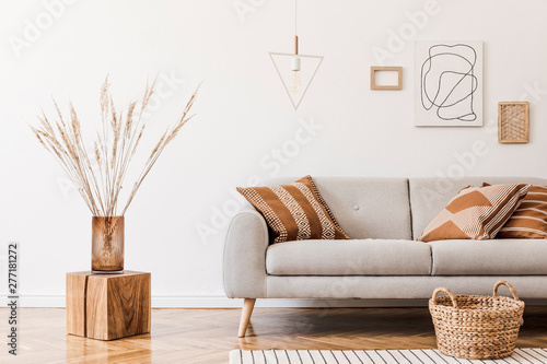 Modern Boho Interior Of Living Room At Cozy Apartment With