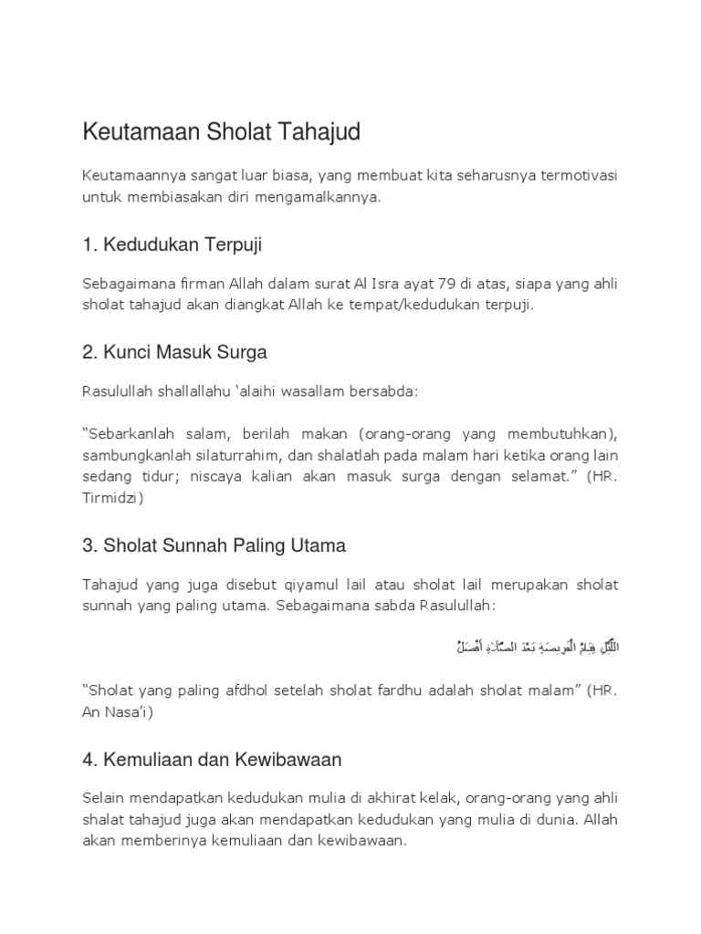 Doc Keutamaan Shalat Tahajud Ajeng Pipit Academia Edu