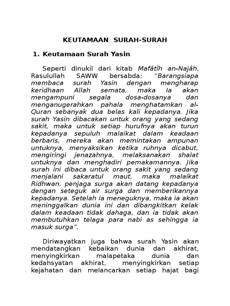 Keutamaan Surah Yasin Ridhwanibnuluqman S Blog