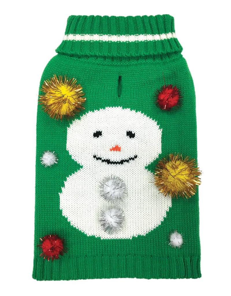 Petrageous blitzens sparkle dog sweater the petrageous blitzens sparkle dog sweater will keep your dog warm and make them look stylish all at the same time. The ugly christmas sweater with a snowman and dog truly is a colorful and funny sweater that will get your pooch noticed in an instant. Luckily weve uncovered some delightful eye pleasing favorites that are sure to impress your dogs significant other over the christmas feast.