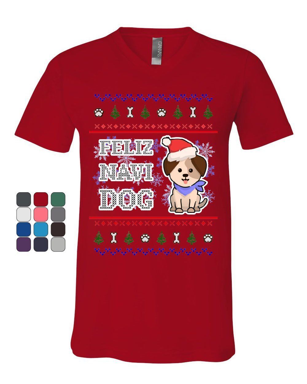 Feliz Navi Dog Ugly Sweater V Neck T Shirt Christmas Xmas Pet Paws Pup Tee Harajuku Summer 2018 Tshirt