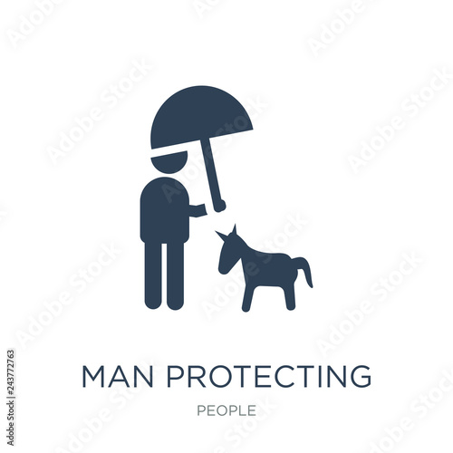 Man Protecting A Dog With An Umbrella Icon Vector On White