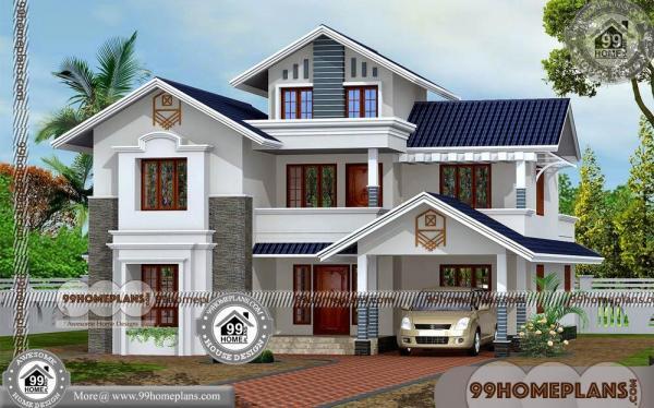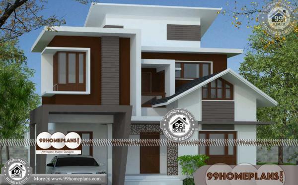 Designed Two Story House Plan Roof And Balcony Modern