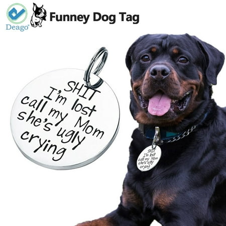 Deago Funny Pet Tag Titanium Steel Dog Tags Collar Tag Text Sht I M Lost My Mom Is Ugly Crying Dog Tag