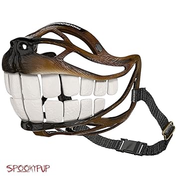 Werewolf dog muzzle adjustable with scary teeth dog muzzle zombie all sizes ebay. Spookypup hilarious halloween dog costume muzzle with large scary teeth get your dog to join the spooked halloween fun the spookypup features a cute realistic dog nose along with hilarious large scary teeth. How bout this one here.
