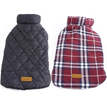 Kuoser Cozy Waterproof Windproof Reversible British Style Plaid Dog Vest Winter Coat Warm Dog Apparel Cold Weather Dog Jacket Xxs 4xl