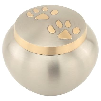 Silverlight Urns Paw Print Round Pet Urn In Pewter Small Cat Or Dog Urn For Ashes Brass 3 5 Inches Tall