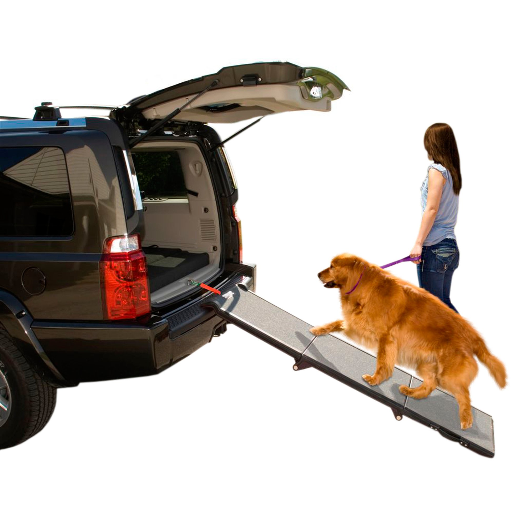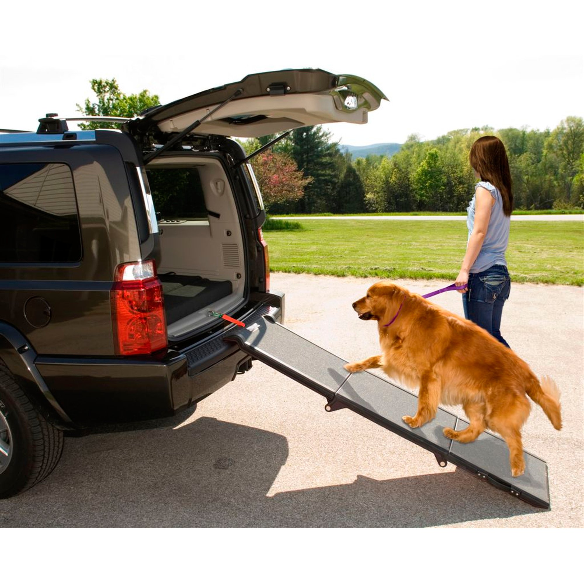Give your pet the boost he needs with the pet gear bi fold dog cat ramp with supertrax. A dog ramp for your suv allows your dog to simply ascend and descend your suv by gently inclining the ramp and fitting to the back of your suvcar. A dog ramp for a car is a great idea if your dog is already struggling with stairs.